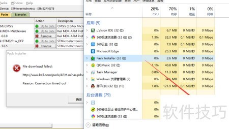 Keil5中Pack Installer文件下载失败,通常是由于官方服务器位于国外,国内访问时网络不稳定导致丢包或连接超时所致。