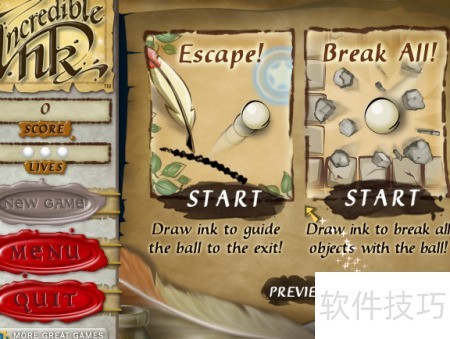 8、 用羽毛操控墨迹,在油纸上引导小球避开干扰,顺利从出口离开,即可成功通关。