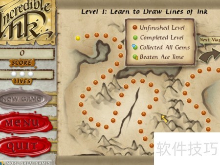 6、 游戏开始呈现一张地图,包含多个关卡需逐个挑战,小红点标识玩家当前所在位置。