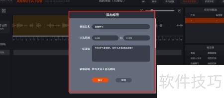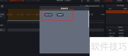 6、 选择音频波形后,系统将弹出标签选项,选取合适标签完成标注,重复此步骤即可继续。