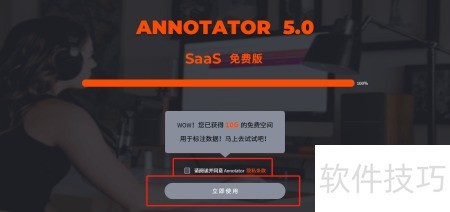 1、 通过搜索引擎查找Annotator5.0,进入标注平台后,阅读并勾选同意使用条款,随后点击立即使用即可开始操作。