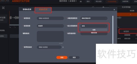 4、 可自定义添加所需标签,分为全局标签与线性标签两类。通过标签类功能进行设置,选择标注范围类型为全局或线性范围,实现灵活标记与分类管理,满足不同场景下的标注需求。