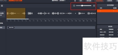 5、 在标注界面右上角调节音频波形大小,选择合适尺寸以便清晰查看。