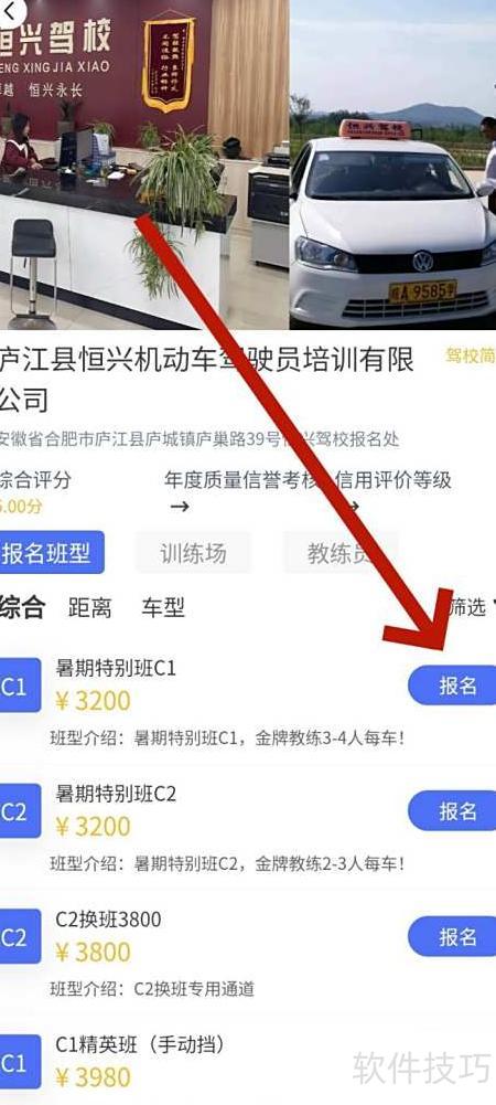 3、 点击报名即可通过皖美学车软件注册驾校课程。