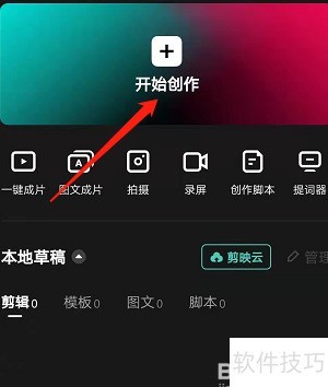 2、 打开剪映首页,点击开始创作即可。