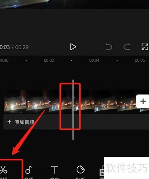 6、 在剪辑菜单中选择分割工具。