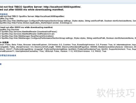 2、 在前端使用IE浏览器进行测试,若问题依旧存在,页面会显示特定提示,说明问题未解决或并非由IIS服务器引起。此时应尝试重启TIBCO Spotfire Web Player服务,以排查是否为此服务导致的异常情况,进一步推进故障排除流程。