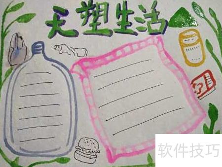 分享无塑生活手抄报的绘画步骤,简单易学,期待大家喜欢并尝试创作。