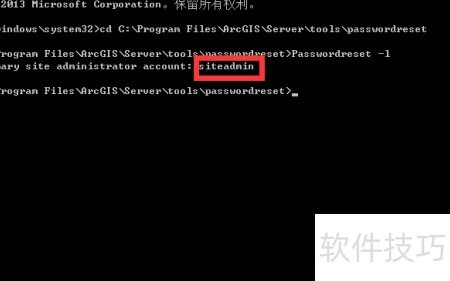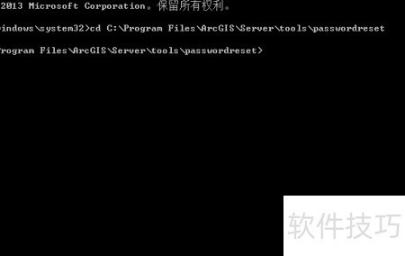 3、 在新打开的命令提示符窗口中,输入 cd C:Program FilesArcGISServer oolspasswordreset,切换到指定目录,然后按回车确认执行。