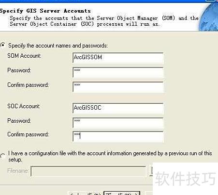10、 设置ArcGISSOM与ArcGISSOC,用户名可使用默认值,密码需自行设定并牢记。