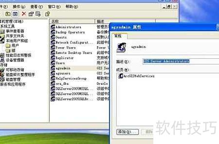 21、 在计算机管理的本地用户和组中,将ARCGISSOM添加至Agsadmin组,ARCGISSOC添加至Agsusers组。建议同时将ASP.NET Everyone用户也加入这两个组,以确保相关服务正常运行并具备必要权限,提升系统访问与操作的稳定性。