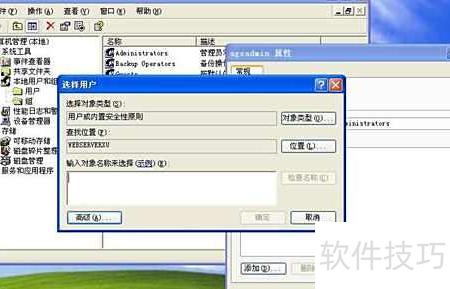 22、 点击图片左下角的高级按钮,弹出用户选择窗口。将ARCGISSOM添加至Agsadmin组,ARCGISSOC添加至Agsusers组。建议同时将ASP.NET everyone用户加入这两个组,以确保权限配置完整,避免后续操作中出现访问受限问题,提升系统运行稳定性与安全性。