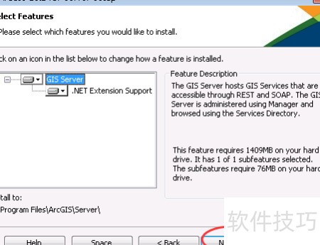 3、 选择ArcGIS Server的安装路径后,单击下一步,操作所示。