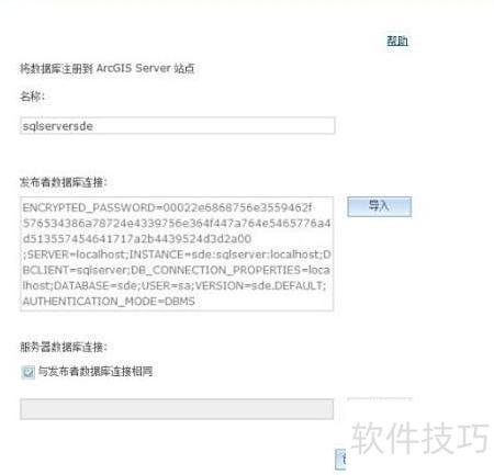 3、 点击按钮,在弹出的对话框中输入自定义名称,然后导入数据库连接文件。此处需导入前文生成的sqlserversde文件,系统将自动解析并转换为文本格式供后续使用。