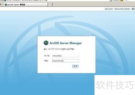 1、 依次点击→→→→,启动ArcGIS Server Manager,然后输入之前设定的用户名和密码完成登录操作。