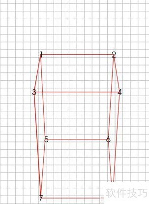 3、 当正方体正面朝向观察点并垂直投影至地面时,所呈现的视觉形态所示,图中数字编号遵循标准透视规则进行标注。