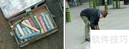 7、 分享一位国外朋友在街头创作三维立体画的全过程图。