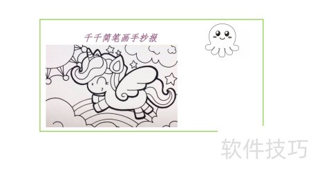 2、 在千千简笔画手抄报四周绘制大边框,并添加装饰图案以美化整体布局。