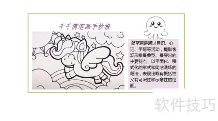 5、 在图框右下角添加文字,详细说明千千简笔画手抄报的内容与特点。