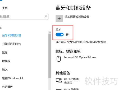 笔记本电脑蓝牙通常在设置中,打开后可搜索连接设备,具体操作方法如下。