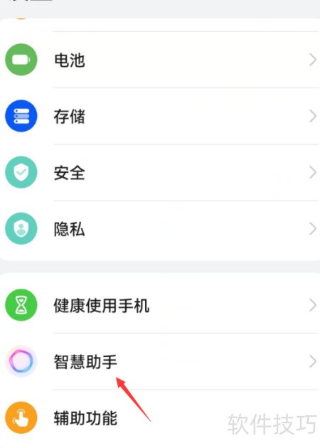 1、 进入设置,选择智慧助手功能。