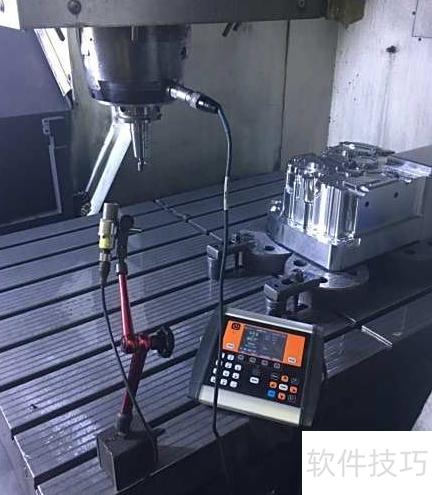 1、 通过CXB动平衡仪对机床主轴进行在线动平衡检测,无需拆卸,将振动传感器吸附于机床表面,再进行激光对准即可完成操作。