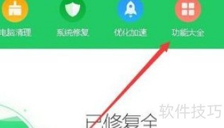 2、 在360安全卫士主界面中,点击顶部的功能大全按钮即可进入。