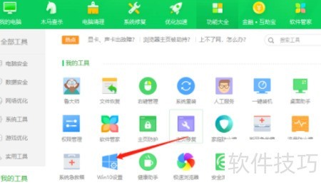 6、 进入Win10系统后打开安全卫士,点击界面上的功能按钮即可。