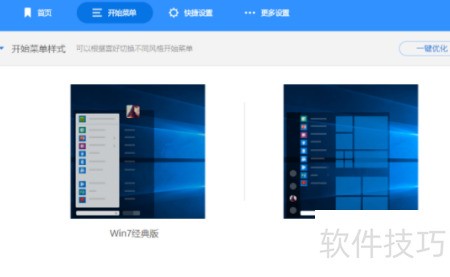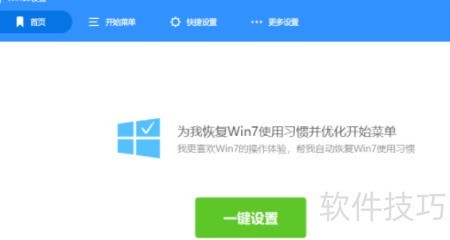 8、 当前界面为Windows 10系统,点击一键设置按钮,即可将开始菜单更改为类似Windows 7的样式,操作简便,效果直观呈现。