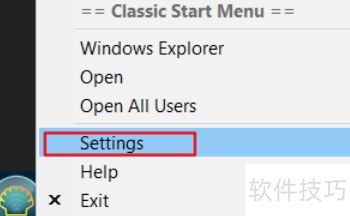 2、 打开Classic Shell软件,右键点击贝壳图标,选择设置选项即可。