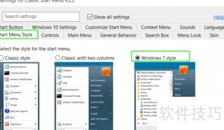 4、 选择Windows 7风格的开始菜单即可完成设置。