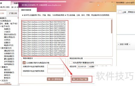 15、 采集完商品信息后关闭网页,即可获得对应链接,点击开始下载便能将这些商品数据上传至软件中进行处理。