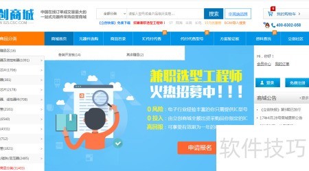 6、 打开立创商城主页,在左侧全部商品分类中查找所需元器件的类别,点击进入即可浏览相关产品。