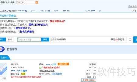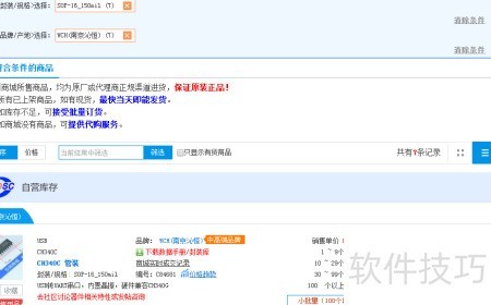 9、 选择条件后将显示所选元器件的详细搜索结果