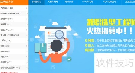 7、 若未找到所需类别,请点击列表末尾的更多商品分类按钮,查看全部分类,并在弹出界面中选择对应的元器件类型。