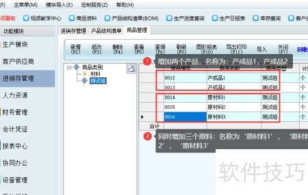 2、 为提升演示效果,在进销存及商品管理中新增两款产成品。