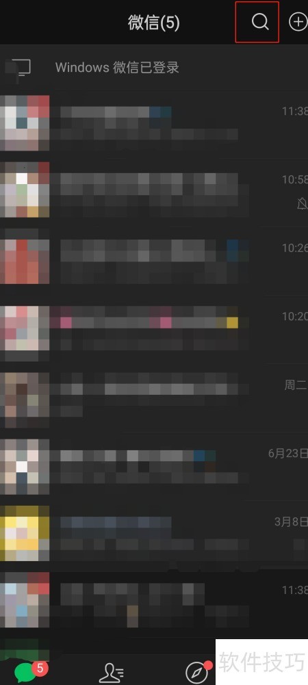 1、 打开微信,搜索传输助手功能。
