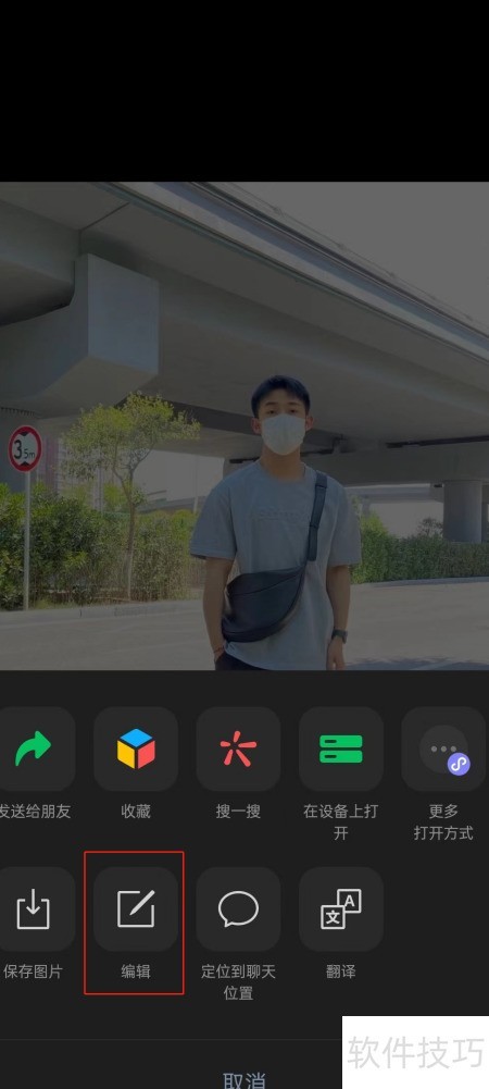 打开微信,搜索微信传输助手,点击+号导入图片,选择目标图片后长按,待编辑选项出现,点击即可进行编辑操作。