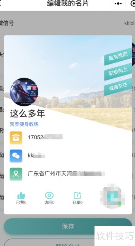 2、 根据名片提示,依次填写姓名、电话、微信号,上...