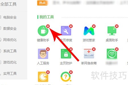 打开60安全卫士,进入功能大全,找到健康助手并点击删除即可完成卸载操作。