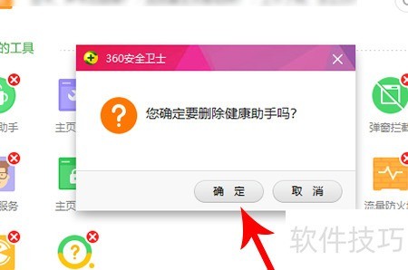 8、 点击后弹出提示窗口,确认删除健康助手时选择确定即可完成操作。