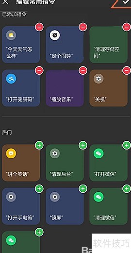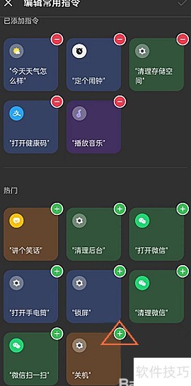 2、 进入编辑常用指令页面,点击指令右上角的添加图标即可。