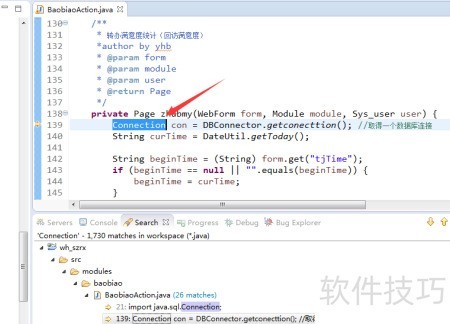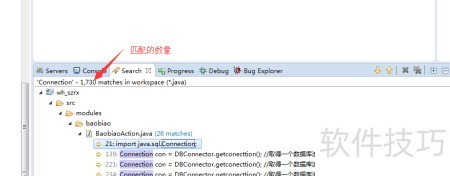 6、 Eclipse将自动打开文件并定位到匹配位置。
