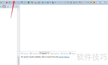 1、 启动Eclipse后,点击搜索功能,位置中红色箭头所示。