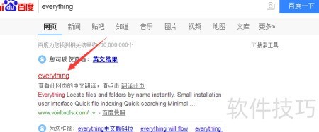 1、 在百度搜索everything,官网链接通常排在首位,直接点击进入即可访问。