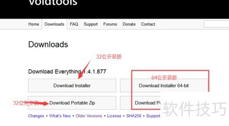 3、 进入页面后可见四个最新版本下载按钮,其中为安装版,zip格式为解压即用的免安装版,请根据电脑系统位数选择对应版本下载。
