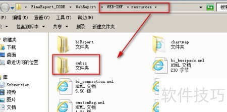 4、 在%BI_HOME%WEB-INF esources目录中将自动创建一个名为cubes的文件夹,具体结构所示。