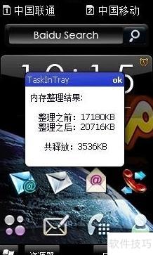 74、 为方便释放内存,安装了taskintray1.4,可在任意界面轻松关闭程序、清理内存并重启手机,操作简便,提升运行效率。