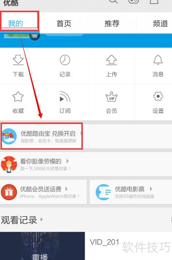 2、 进入屏幕左上角我的页面,向下查找并点击优酷路由宝兑换开启即可。
