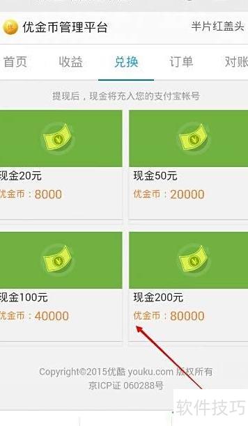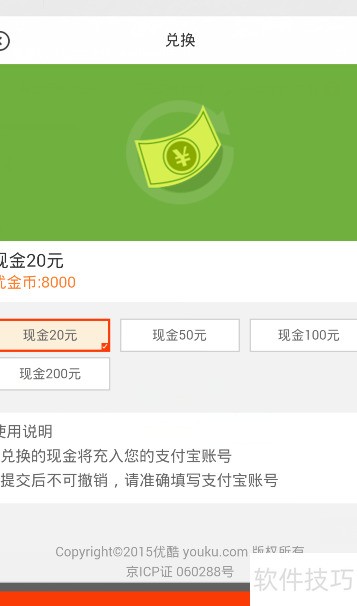 7、 第三项为现金兑换,可选金额包括20、50、100、200等,兑换比例清晰明了,一目了然。